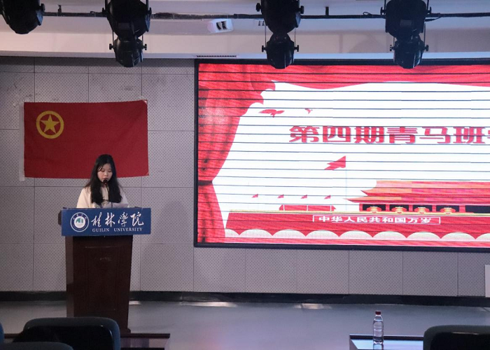 仪式开始,全体成员奏唱中国共青团团歌《光荣啊,中国共青团》,由周杰书记作开课致辞,他指出青马班成员肩负着沟通桥梁,榜样示范以及组织凝聚的作用,是广大学生的领头人,各青马班成员要充分发挥良好的组织示范作用,以确保学校的各项工作活动顺利落实开展。接着,周杰书记对本次青马班学员们提出了以下三点希望: