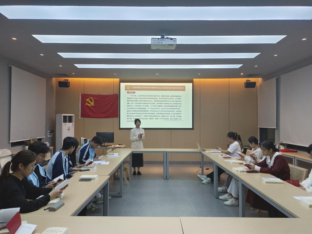 黎金丽指出,党员要持之以恒深入学习领会习近平新时代中国特色社会主义思想,不仅要学,还要学到脑子里,做到学思用贯通,知信行统一。接着,黎金丽与全体学生党员一起学《中国共产党章程》,主要从为什么需要修改党章,修改党章的必要性和原则,以及党章修改的具体内容三个方面展开学习。黎金丽还指出:学习党章,不仅要知其然,还要知其所以然;学习党章,需要我们党员同志原原本本学、反反复复学、理论联系实际学、深入思考学。