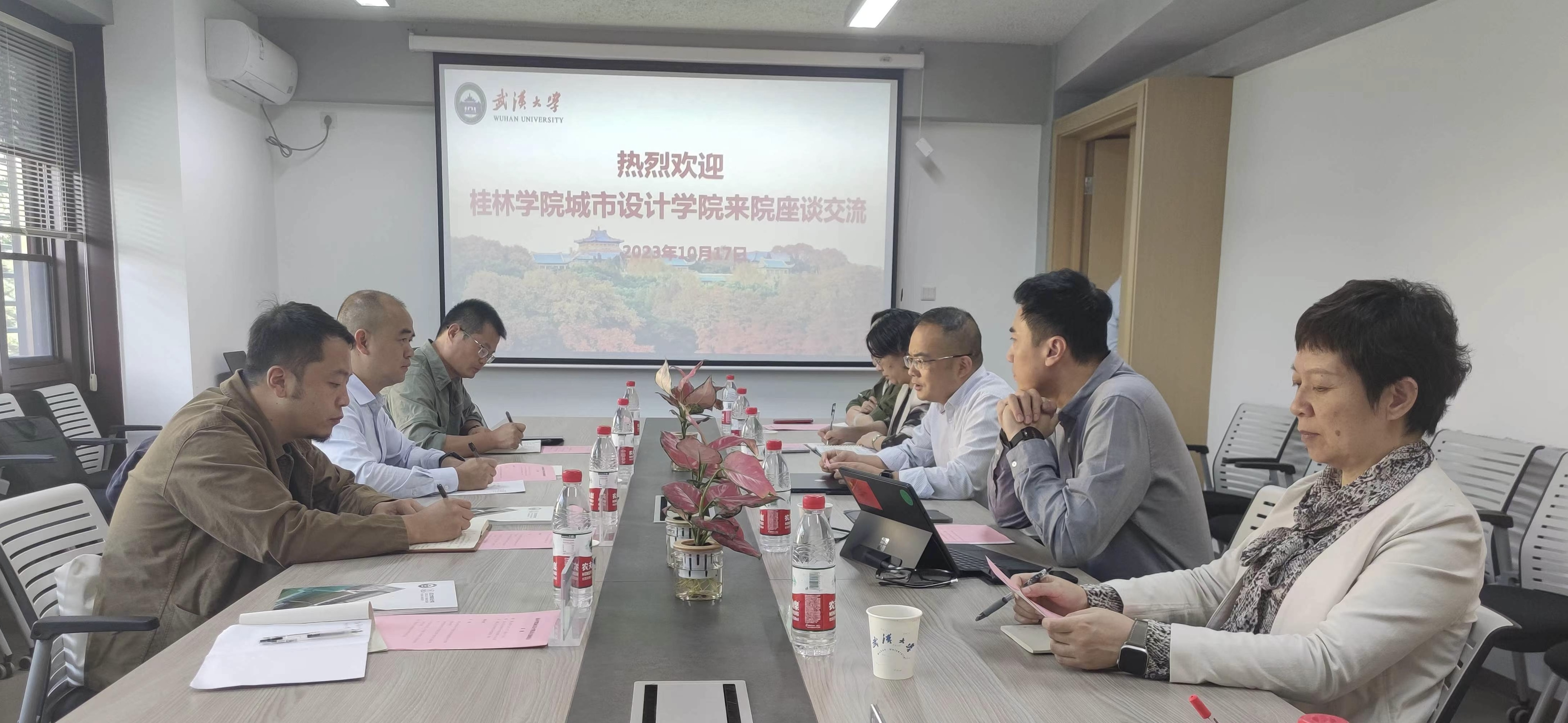 10月17日下午,城市设计学院组织访问团赴武汉大学城市设计学院学习交流,访问团由学院党总支书记甘华成、主持工作副院长贺雷、副院长葛之刚以及建筑学教研室负责人组成。武汉大学城市设计学院院长李志刚、副院长邓俊以及相关专业负责人热情的接待了来访团一行。