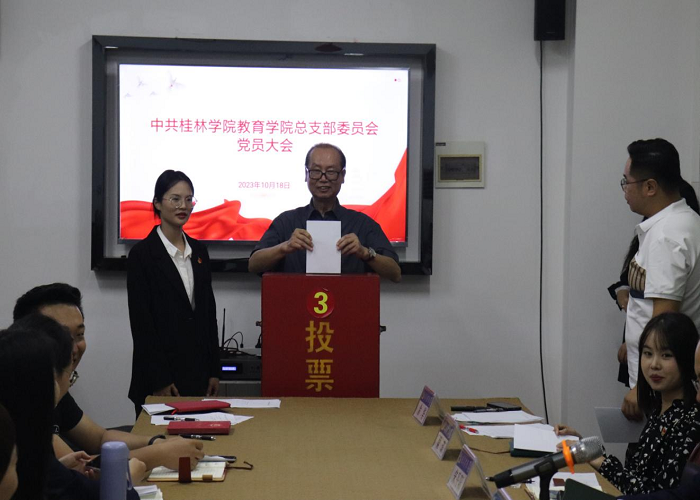大会根据《中国共产党章程》《中国共产党基层组织选举工作条例》和《中国共产党普通高等学校基层组织工作条例》等文件要求,结合学院工作需要,在广泛征求全体党员意见的基础上培养推荐了新一届党总支委员会委员候选人。会上,主持人宣读了《中国共产党桂林学院教育学院总支部委员会党员大会选举办法》,经大会表决,全票通过大会《选举办法》,随后,又宣布了党总支委员会委员名额,采取无记名投票的方式,差额选举产生了新一届委员会委员。