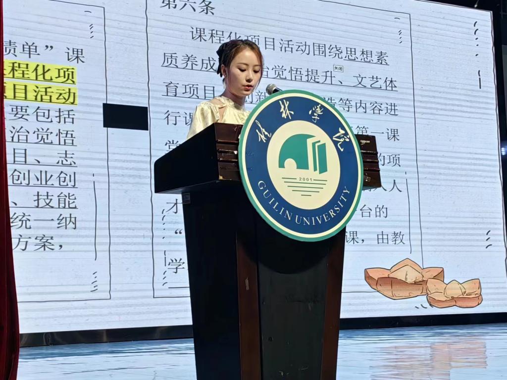 10月22日下午,理工学院在弘善讲堂举办成功举办2023级新生第二课堂解读讲座,本次讲座由理工学院团总支书记蓝贤斯老师主讲,黎金丽老师主持,理工学院2023级全体新生参加了本次讲座。