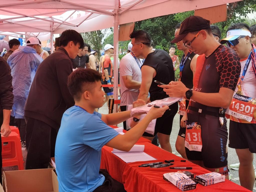 10月28日,50名赛前志愿者前往阳朔县阳朔中学协助组委会做好赛前准备工作;10月29日,279名赛事志愿者在骑行赛道、T2换项区、跑步赛道、终点四个点位为参赛运动员提供全方位、全天候、全过程的服务与支持。活动期间,赛前志愿者为运动员提供赛事咨询、运动员资料审核、参赛物资发放等服务;赛事志愿者协助裁判和医护人员做好赛道分流、降速提醒、医疗观察、帮助运动员拉伸放松等工作。