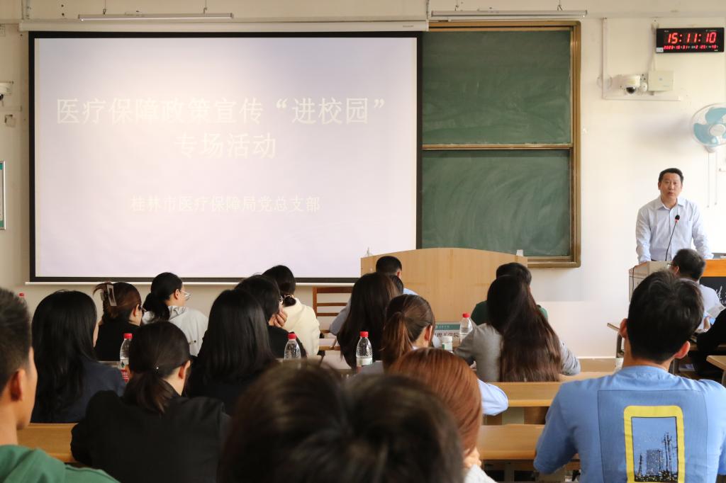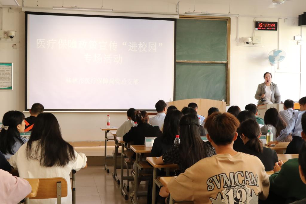 为让我校学生深入全面地了解桂林市城乡居民基本医疗保障政策,学生事务处(部)特邀桂林市医保中心、桂林市税务局工作人员到校开展医疗保障政策宣传“进校园”专场活动。