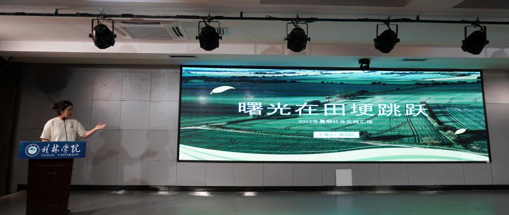 以青年视角关注民生国情,以实践精神担当青春使命。在本次成果展中,团队及个人代表以精彩讲述的方式,展现各自的风采,进行总结性成果展示。下一步,我校团委将继续深化实践育人体系建设,通过志愿服务、社区实践等工作进一步延展社会实践的平台,引领桂院青年学子在社会实践的大课堂中知行合一、以知促行、以行求知,将个人的小实践融入国家发展的大实践中,奋力书写“强国有我,青春有为”的新篇章。