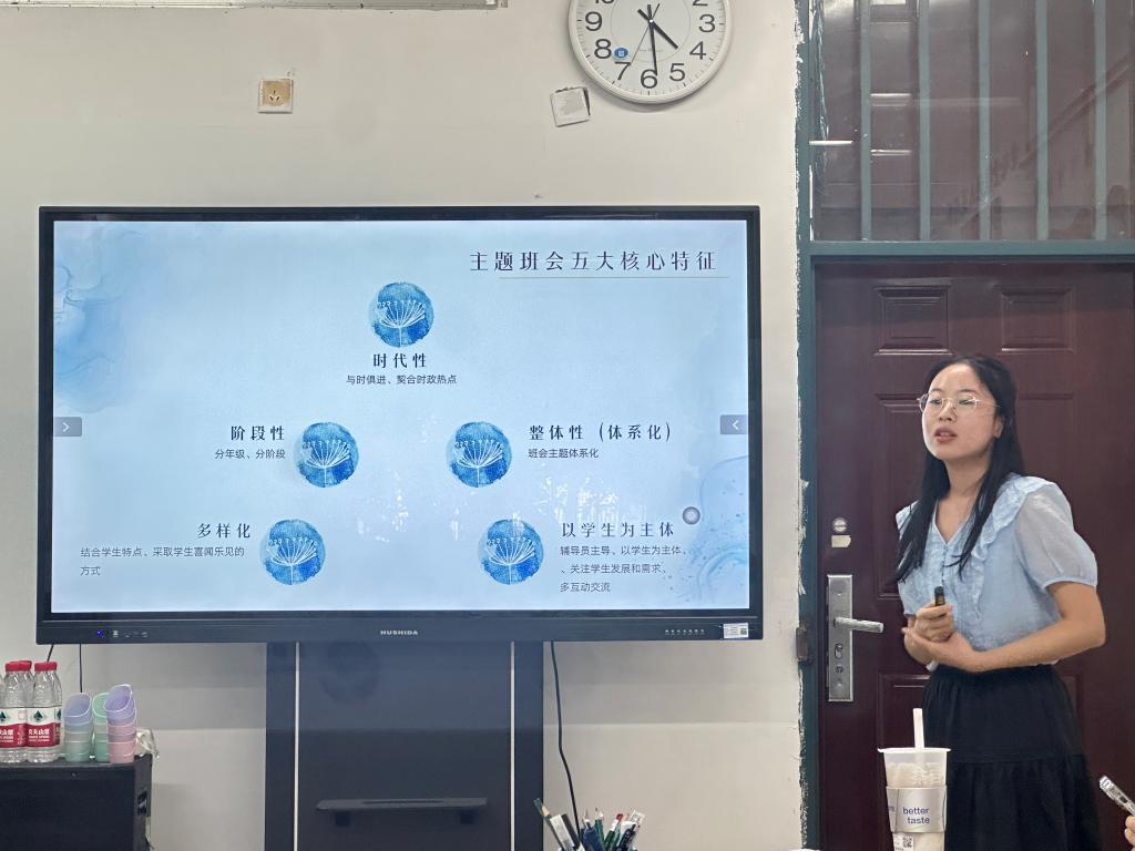 黎金丽老师和李莉老师结合自身带毕业生的经历给大家分享了毕业生就业工作经验。黎金丽从专业、学生个性和能力三个维度分析理工学院2019级毕业生的基本情况,针对毕业生“懒”就业、“慢”就业的现状,详细列出了辅导员就业工作的具体对策。李莉将学生的基本信息、校内论文导师、企业导师、是否在校和就业情况反馈等信息绘制成表格,做到化繁为简,精准对标。同时她提醒辅导员们从大一开始就要开始培养学生的就业意识,适当增加他们的紧迫感。谢海云老师就“如何开好主题班会”进行分享,总结出主题班会的五大特征。她主张班会主题的选择与学生兴趣、社会热点相结合,使得主题班会开展得生动活泼,富有价值。