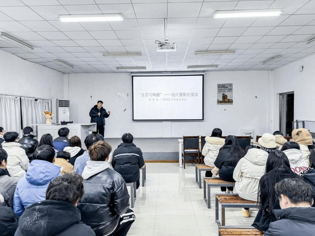 12月22日下午,城市设计学院邀请广西师范大学美术学院副院长、硕士生导师刘宪标教授到校开展“反思与揭示——现代摄影的探索”主题讲座。讲座在嘉善楼132教室开展,学院2022级数字媒体艺术专业学生和部分教师代表参加活动。