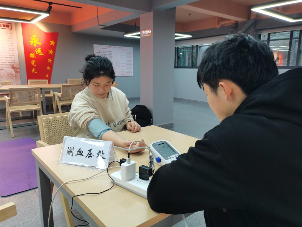 图:志愿者为同学们进行血压测量