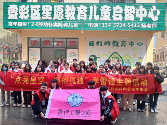 3月11日,管理工程学院学生社区党支部联合学院团总支学生会开展“点亮星空,拥抱孤独”志愿服务活动,管理工程学院团总支副书记吴东艳、学生社区党支部书记沈娟带领志愿者们一同前往叠彩区星愿教育儿童启智中心看望自闭症儿童。志愿者们与孩子们玩拼图、画画等,和孩子们共同折叠成各种形状并作为礼物送给他们,为孩子们提供关爱和陪伴;志愿者们跟随两位老师与自闭症儿童深入交流,并带他们玩套圈游戏,用行动传递温暖与关爱。