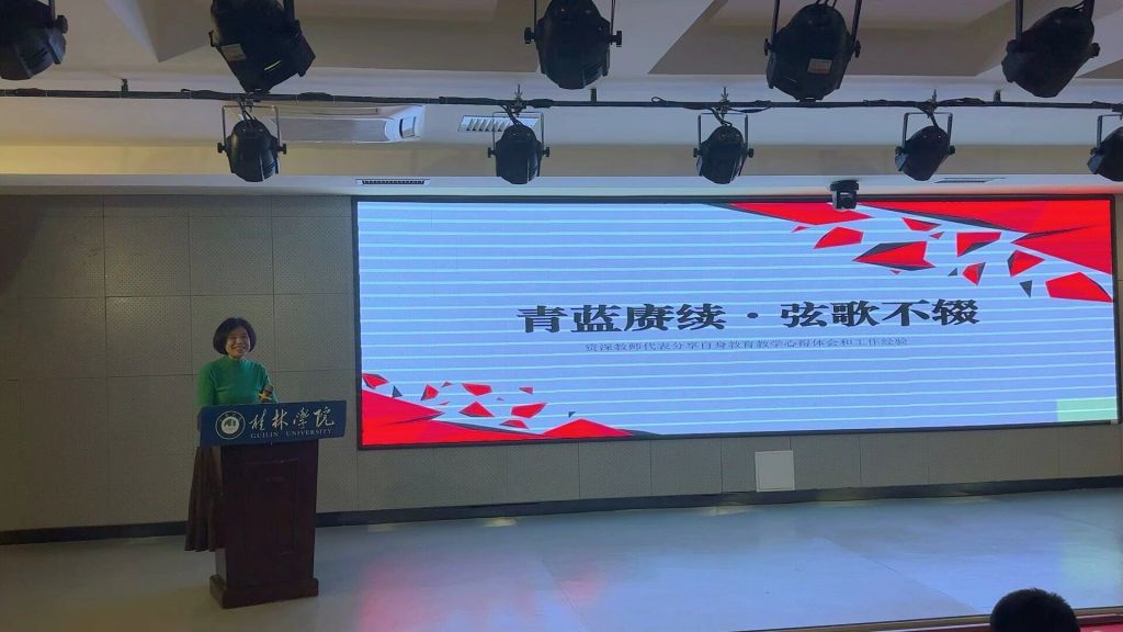 学院三名资深返聘教授在活动中为老师们分享了他们在多年教育工作中的经验和思考。国家一流本科课程负责人廖元秀教授为老师们介绍了“2W1H”的工作方法,指导青年教师以连续发问的方式准确理解教学任务、找准教育目标、思考教学方法。赵强副教授分享了他在玉林师范学院以及桂林学院指导师范生提升教学技能的经历,并就学院加强师范生教学技能的培养提出了个人的思考和建议。黄玲副教授从广西师范大学教学督导员的经历出发,为大家介绍了课程质量评价的观测指标,强调教师要坚持以学生为中心,精心进行教学设计,调动学生深度参与课堂互动,并提醒青年教师要关注学生的上课状态,加强学生的思想管导,做到“教书”与“育人”并重。