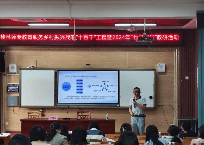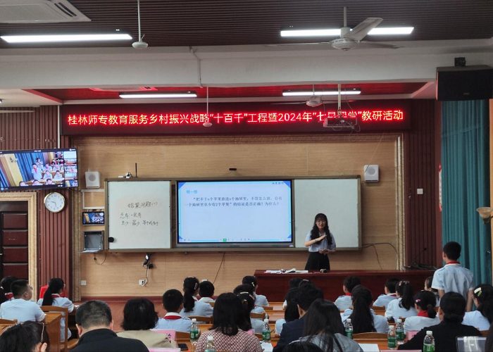 4月26日,2024年“七星课堂”暨教育服务乡村振兴战略“十百千”工程活动在桂林市临桂区两江镇中心小学举行,桂林学院“引领乡村小学数学教师专业发展(黄大年式)教师团队”的成员以及小学教育专业师生代表受邀参加。本次活动旨在推动乡村小学数学教学的创新发展,提升教师的专业素养,为乡村振兴贡献教育力量。其中,蒋巧华同学的课例展示和蒋晓云教授的专题讲座受到了与会人员的一致好评。