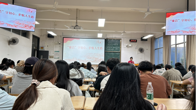 为深入推进清廉学校建设,引导学生树立清廉文化基因,5月5日晚,传媒与新闻学院各专业于嘉善楼组织开展“诚信守法,敬廉崇洁”主题班会,传媒与新闻学院各专业专任辅导员及全体同学参加此次班会。
