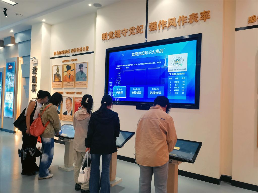 展厅以“以案为鉴 永葆本色”为主题,师生们依次参观了序厅、违纪篇、违法篇、情景篇、激励篇等五个篇章的展示内容,并集中观看了警示教育片。展厅通过实物、图片、文字、影音以及雕塑场景模拟等多种形式,以鲜活的案例、真实的画面和令人警醒的文字,让师生们在视觉和听觉上上了一堂全面生动的反腐倡廉警示教育课。特别是发生在大家身边的贪腐案例,给在场党员干部的心灵上带来极大的震撼,让同志们深深地感受到腐败行为给党和国家所造成的巨大损失,给社会、家庭、个人所带来的沉重代价,警醒着大家要从典型案例中吸取经验教训,明确学纪、知纪、明纪、守纪的重要意义。展厅内吊顶处设置了一口巨大的警示钟,时时发出响声,时刻警醒着人们要克己奉公,拒腐防变,警钟长鸣。
