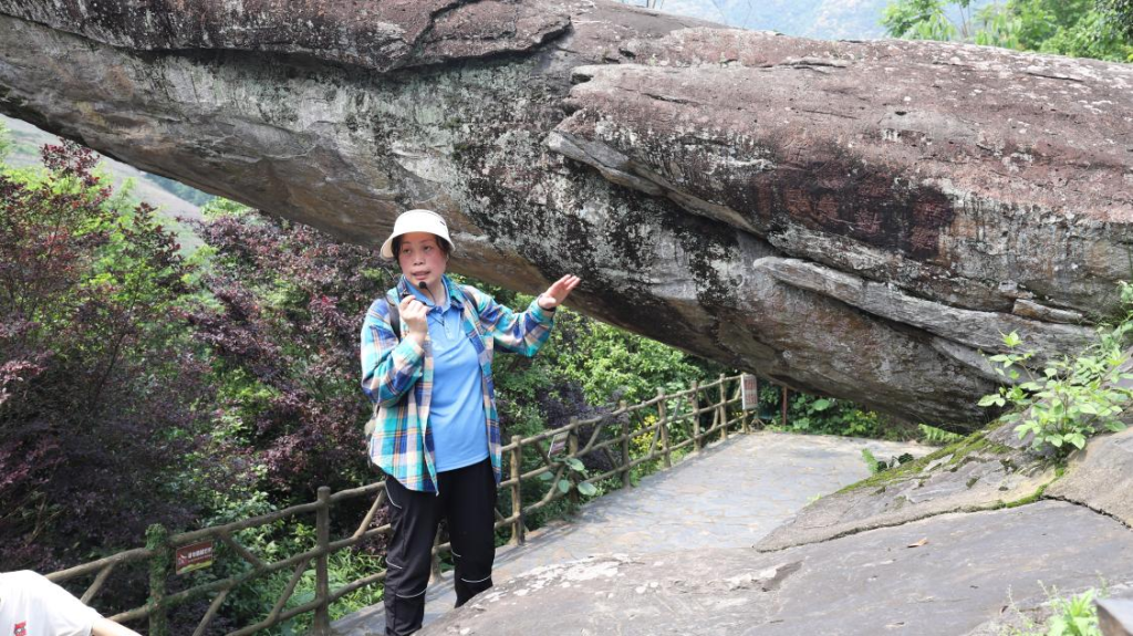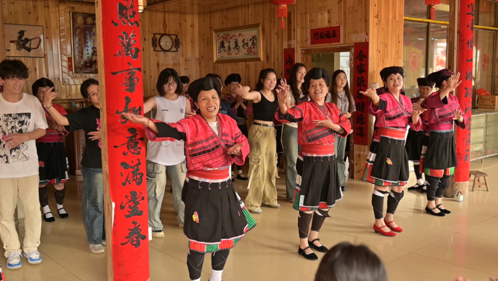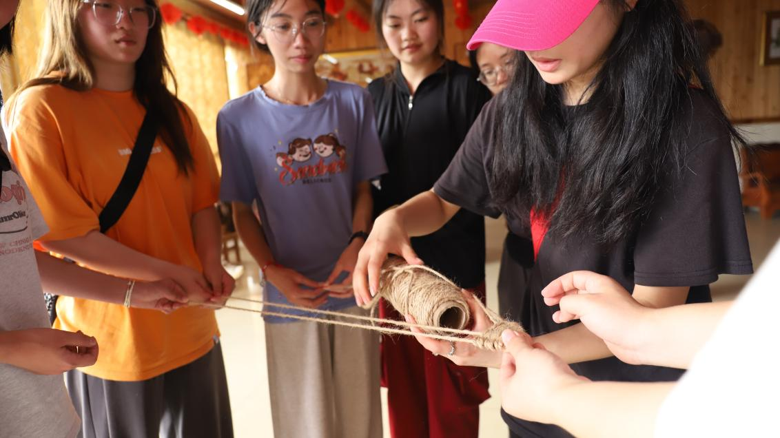 在白面瑶寨红军岩,团队成员仔细聆听龙胜军民鱼水情的生动故事。寨子里,古朴的木制“半边楼”整齐地立在半山腰的斜坡上,红瑶博物馆、旅游步行道、停车场以及污水处理、村寨亮化等设施应有尽有,当地阿叔阿嫂端出自制的油茶、点心欢迎研学团队的到来,在这里,团队成员学习编织草鞋,与当地民众一道载歌载舞,感受少数民族文化,深刻感悟党的民族政策的优越性,见证了改革发展给少数民族地区带来的伟大成果。
