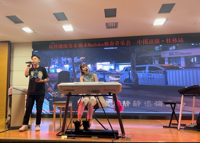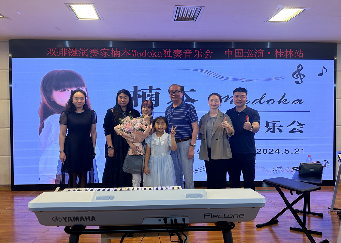 5月21日晚,日本双排键演奏家楠本Madoka独奏音乐会中国巡演.桂林站演出活动在七星区青少年活动中心演艺厅举行,来自专业院校的专家、教师及中小学生代表参加了本次活动,教育学院院长彭超、副院长李安然及音乐学专业师生代表应邀出席,为推动相关课程实践教学、进一步打造高校音乐教育与基础音乐教育联合育人平台进行了有益探索。