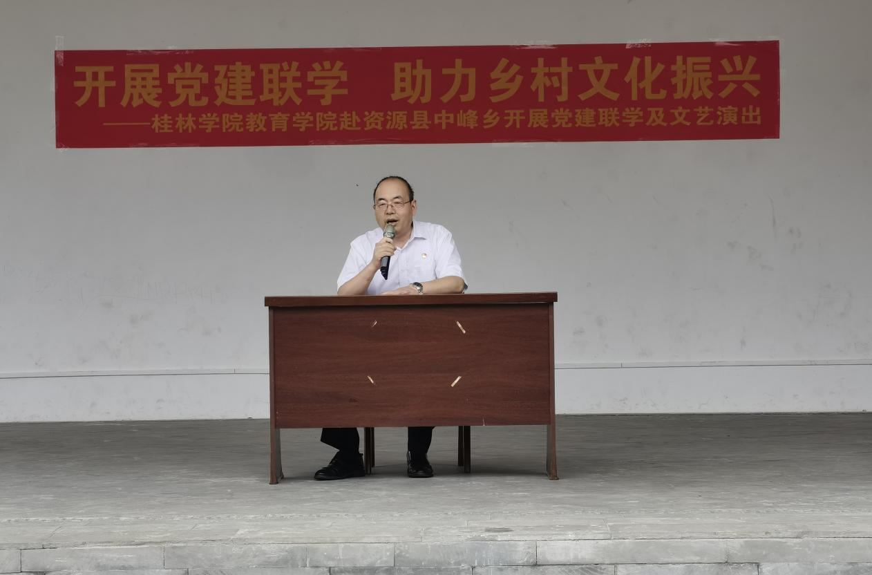 为了更好开展基层党组织联学共建,振兴乡村文化建设,5月31日,教育学院院长彭超、党总支书记周杰及部分师生来到资源县中峰镇,开展了联学共建和文化下乡活动,活动在中峰镇政府门前广场上的小舞台举行。中峰镇政府部分党员干部和当地群众观看了现场演出。