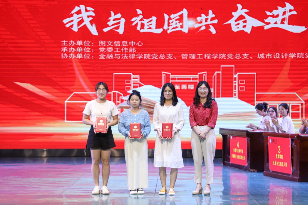 本次竞赛以“我与祖国共奋进”为主题,经过院级初赛选拔出8支代表队进入决赛。决赛邀请了校党委委员、党委工作部部长廖莎、图文信息中心主任何秀梅、马克思主义学院院长张常永担任评委。8支队伍沉着冷静、反应迅速、踊跃抢答、密切配合。此外,决赛还设置观众互动环节,观赛师生积极参与互动,评委为参与互动答题的观众讲解题目背后的故事与知识点,观众在生动有趣的比赛中学习了新中国成立以来的国内时事政治及党的创新理论知识。经过必答题、抢答题和风险题三个环节激烈角逐,金融与法律学院代表队斩获一等奖;传媒与新闻学院、教育学院代表队获得二等奖;体育与健康学院、管理工程学院、人文学院、城市设计学院、理工学院代表队获得三等奖。根据决赛现场表现,金融与法律学院、城市设计学院、管理工程学院荣获优秀组织奖,来自金融与法律学院的谭海练、传媒与新闻学院的曹依婷、教育学院的黄思朗获评优秀指导老师。