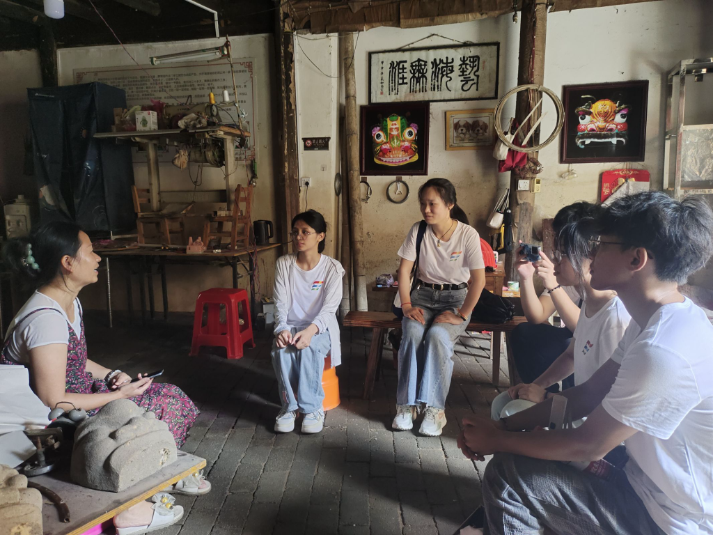 与非遗传承人周女士交流