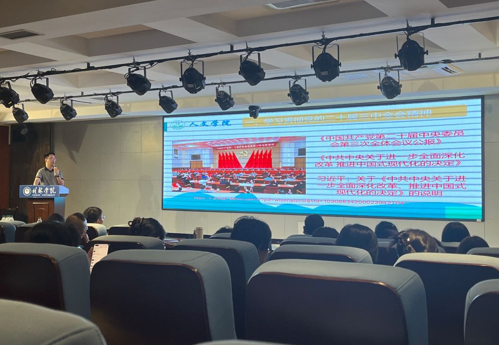 为进一步凝聚团队力量,确保开学各项工作有序、平稳、高效开展,引领全院教职工以崭新的面貌、饱满的精神迎接新学期,9月1日上午,人文学院在至善讲堂举行新学期全体教职工大会,会议由党总支书记主持,全体领导班子、全体教职工参加会议。