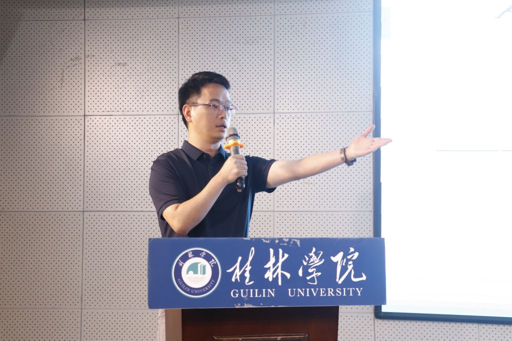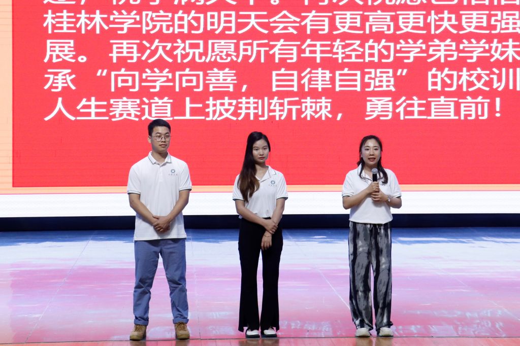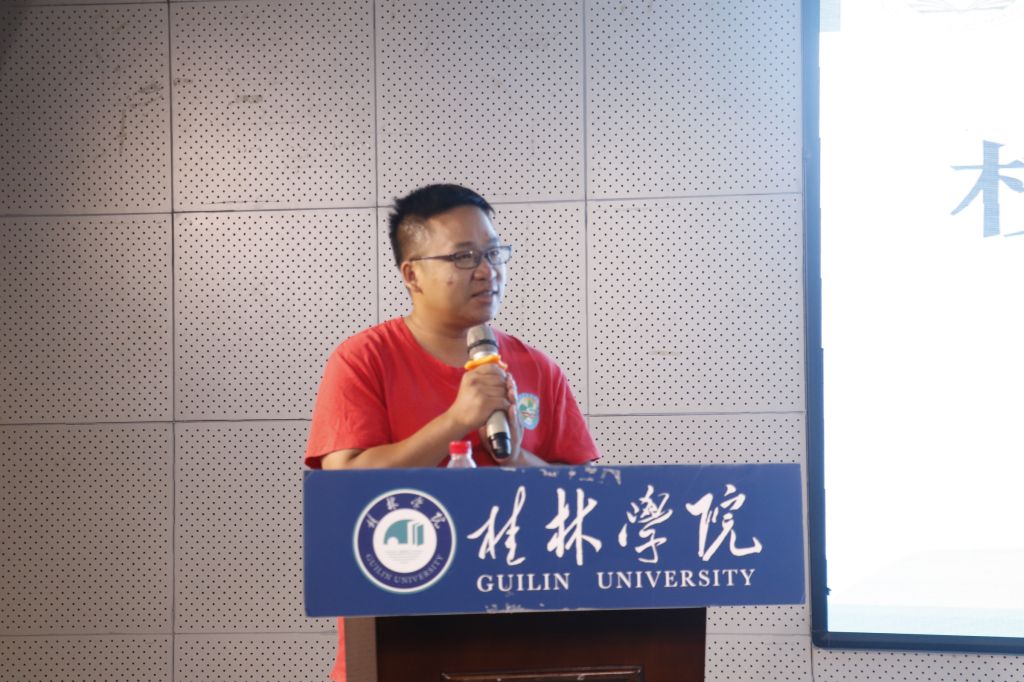 活动最后,新生家长代表、同时也是学院2010级校友袁海科深情回顾了自己在桂林学院求学的难忘经历,表达了对学校老师们的培育之恩的崇高敬意,抒发了自己当初选择桂林学院以及现在支持自己妹妹继续选择桂林学院的深刻决心。