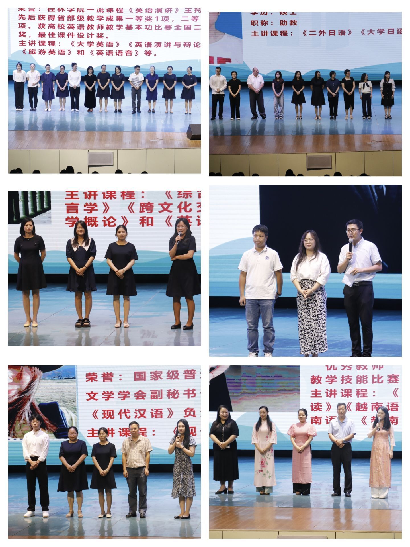 学院全体教职工分别以教研室、辅导员和行政教辅为单位依次亮相。他们面带微笑,眼神中透露出对教育事业的热忱与对新生们的欢迎。各教研室简要介绍了本教研室的成员组成、核心课程、教学特色及取得成就等,以团队形式展现着人文学院教师的风采与力量。辅导员团队以亲切笑容和温暖话语,介绍了自己的角色与职责,并表示将竭诚为每位学生提供学习、生活、心理等多方面的指导与帮助。行政教辅人员是学院日常运作不可或缺的幕后英雄,她们简要介绍了自己的工作范畴与服务内容,并表达了对师生们需求积极响应的决心,为师生营造一个和谐、高效的学习与工作环境。教师们的集体亮相为师生之间的进一步交流奠定了坚实的基础,也让新生们对大学的学习生活充满期待。
