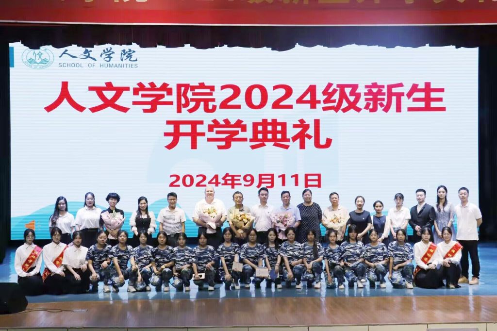9 月 11 日下午,人文学院2024级新生开学典礼暨师生见面会在弘善讲堂隆重举行,为新同学们开启充满希望与挑战的大学新篇章。学院领导出席活动,学院全体教职工及2024级全体新生参加活动。新生家长通过线上直播方式参与观看活动。开学典礼由学院党总支书记主持。