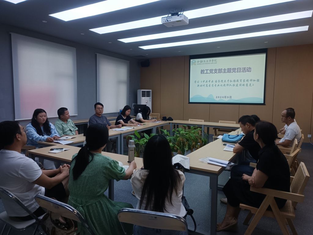 在这个金秋送爽、丹桂飘香的季节里,9月18日下午,金融与法律学院教工党支部在杉湖家苑一站式学生社区成功举办了以“九月师韵映党辉,师德铸魂育新人”为主题的党日活动。此次活动旨在通过深入学习教师职业道德规范,弘扬高尚师德师风,强化党员教师的身份意识,进一步推动学院教育事业的发展。