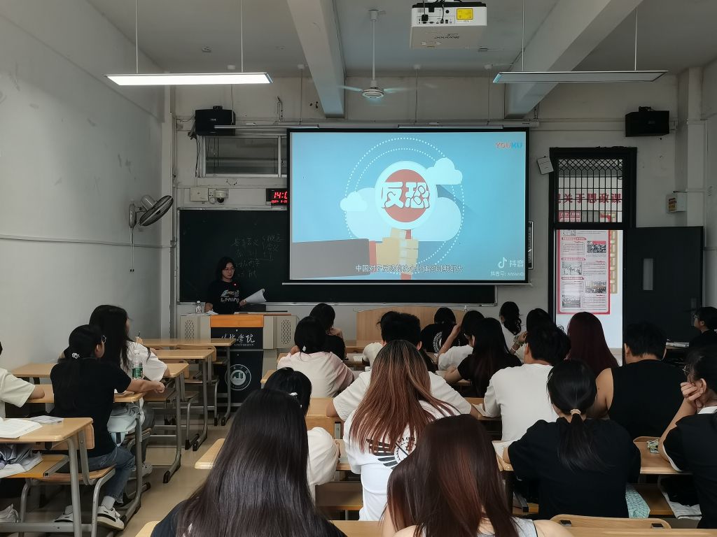 班会上,辅导员讲解了什么是恐怖主义与恐怖袭击、如何识别恐怖袭击等内容,并结合实际案例,详细介绍了如何使用法律手段预防和应对恐怖活动,以及在紧急情况下的正确处置方法。同学们观看了《中华人民共和国反恐怖主义法》宣传视频,随后,同学们就如何在校园内推广反恐防暴知识进行了讨论,并提出了一系列创新的想法和建议。