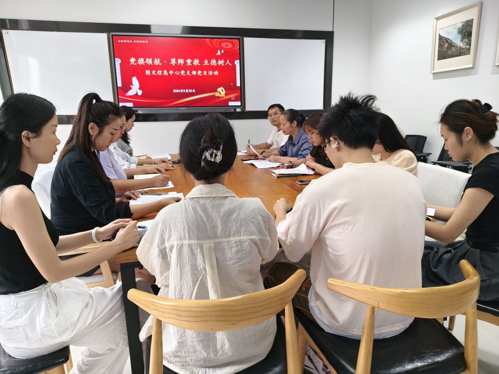 为学习宣传贯彻习近平总书记重要讲话和全国教育大会精神、学习《中共中央 国务院关于弘扬教育家精神加强新时代高素质专业化教师队伍建设的意见》文件精神,图文信息中心党支部于9月25开展“党旗领航·尊师重教·立德树人”主题党日活动。