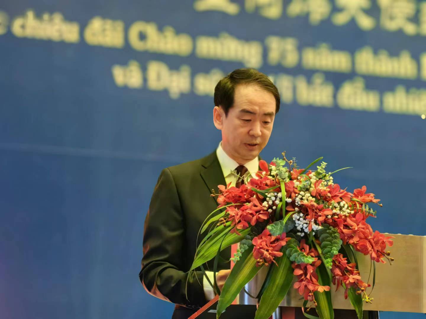 会上,何炜大使在致辞中系统回顾新中国成立75周年来取得的非凡成就,重点阐释党的二十届三中全会的非凡意义,高度评价中越携手走过的非凡历程,表示中方愿同越方一道,在两党最高领导人战略引领下初心如磐、风雨同舟,构建好契合新时代要求的中越命运共同体。
