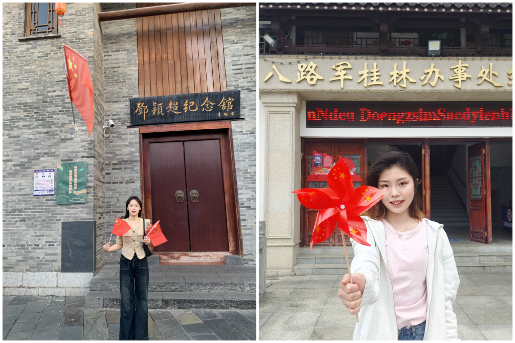国庆期间,大家纷纷前往各自所在地著名的红色基地参观学习,比如22级数学与应用数学黄美俞前往了南宁的邓颖超纪念馆、21级电子信息工程韦修旗前往了广州历史博物馆。通过参观一件件珍贵的革命文物和历史图片,大家仿佛回到了那个战火纷飞的年代,深刻感受到了革命先烈们为了民族独立和人民解放所付出的巨大牺牲。