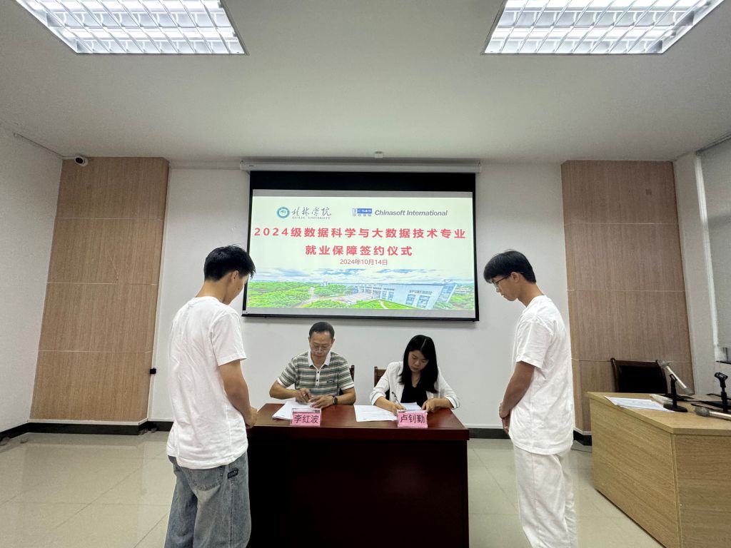 随后,中软教育科技集团华南区总监卢钊勤与理工学院院长共同为2024级数据科学与大数据技术专业的全体学生逐一签署就业保障协议。