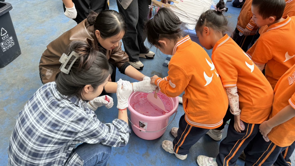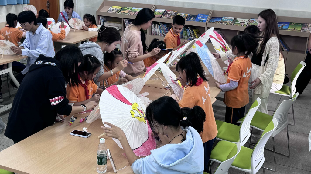 会后,城市设计学院学生党支部和学生社区党支部的师生党员们以“铸牢中华民族共同体意识”党建联盟共建的形式指导金雁学校的小学生们参与漂漆扇、油纸伞绘画和竹编画等传统艺术工艺的制作,共同绘制“中华民族大团结”的美丽景象。
