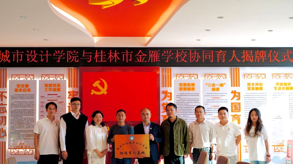 11月4日下午,城市设计学院与广西师范大学附属金雁学校共建协同育人基地揭牌仪式在金雁学校会议室举行。城市设计学院党政负责人,金雁学校党支部书记蒋周武、校长毛洁,以及双方师生代表出席活动。