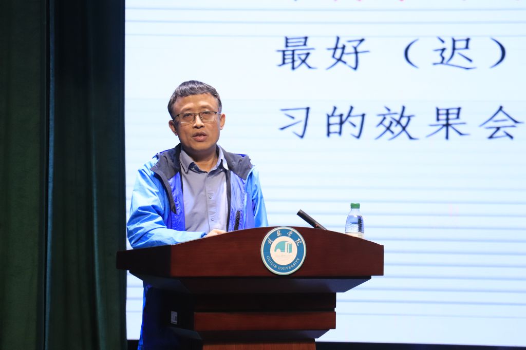 随后,他着重介绍了考研的学习方法。他强调,设立高远的学习目标至关重要,同学们应以桂林学院为起点,立志提升学术水平与综合素质。同时提醒同学们寻找适合自己的学习风格和方法,重视课堂与读书笔记,积极参与学术交流活动。最后,他希望新生务必珍惜大学这段宝贵时光,勤奋学习,拓宽视野,并培养良好的写作习惯,多关注生活,保持艺术敏感度。