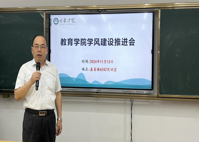 为强化学风建设,做好学风建设月各项工作,2024年11月13日,教育学院于嘉善楼6242实训室召开学风建设推进会,本次会议由教育学院党总支书记主持,全体教职工参加。