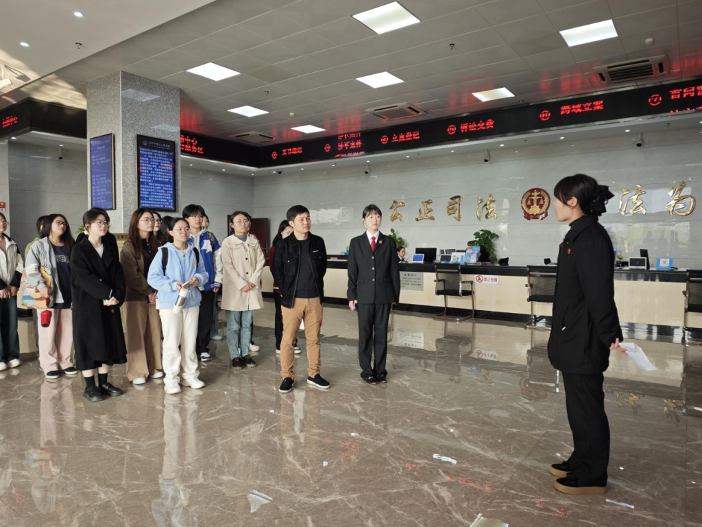 在法院工作人员的指引下,学生们有序地参观了立案信访窗口、诉讼服务大厅、调解室和审判法庭,详细了解了立案、诉讼流程。在参观过程中,学生们展现出浓厚的兴趣和求知欲,不时向工作人员提出相关问题,而法院工作人员则以耐心细致的态度逐一进行解答。