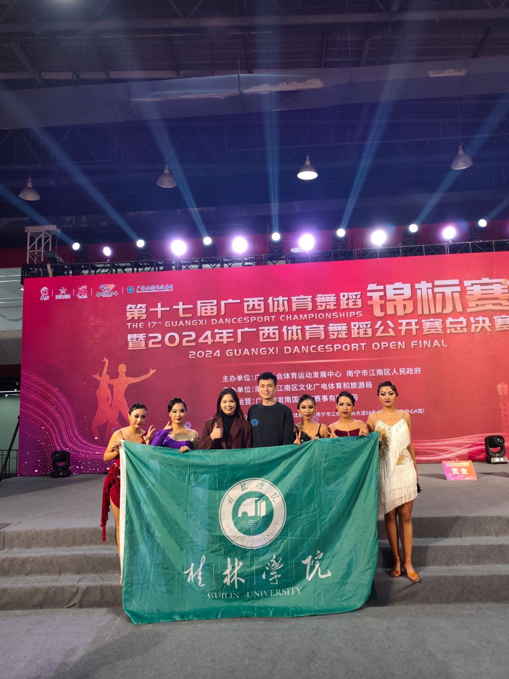 12月14日,由广西社会体育运动发展中心、南宁市江南区人民政府联合主办,南宁市江南区文化广电体育和旅游局承办,广西旅发南国体育赛事有限公司运营的第十七届广西体育舞蹈锦标赛暨2024年广西体育舞蹈公开赛总决赛在南宁市江南区华南城会展中心A馆举行,我校体育舞蹈代表队参加了本次比赛。