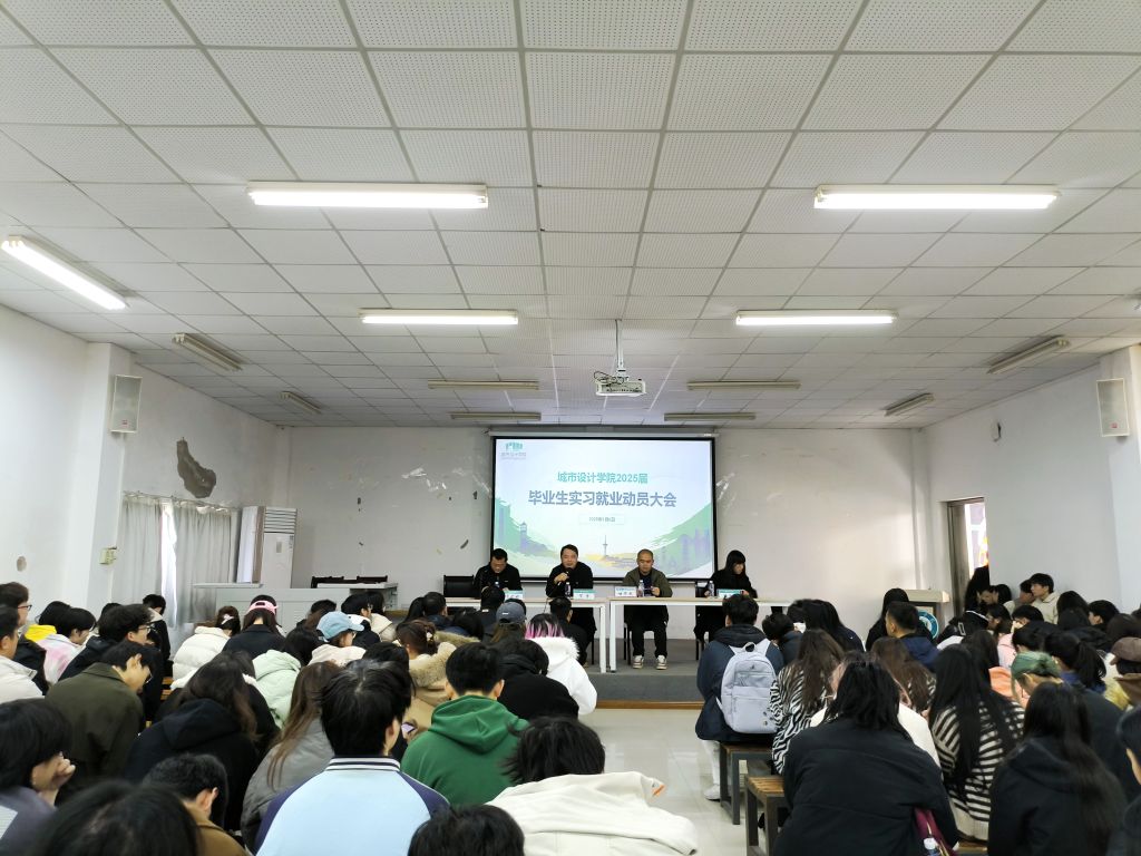 1月6日上午,城市设计学院在132教室召开2025届毕业生实习及就业动员大会,学院领导班子、毕业班辅导员以及全体毕业生到会,会议由教学副院长主持。