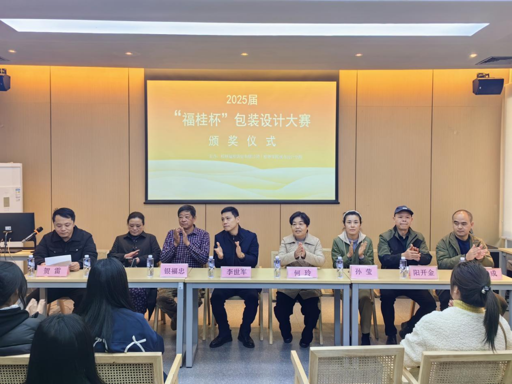 1月6日下午,由城市设计学院与桂林福桂纸业有限公司共同举办的第十届“福桂杯”纸业包装设计大赛颁奖仪式在杉湖学生一站式学生社区举行。学校副校长何玲,桂林市雁山区委统战部长李世军,雁山区工商联主席孙莹,雁山区工信局副局长阳开金、桂林福桂纸业有限公司董事长银福忠等出席颁奖仪式。城市设计学院相关负责人以及师生代表参加活动,仪式由城市设计学院负责人主持。