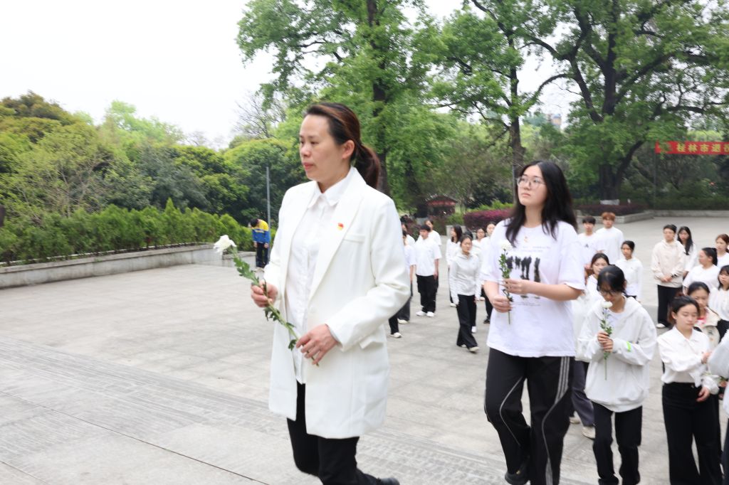 祭扫仪式在庄严肃穆的氛围中拉开序幕。主持人阐述了清明祭扫的意义并念诵悼文,师生们垂首默哀,以无声的敬意寄托哀思。接下来,全体人员依次缓步上前,将手中的菊花轻轻摆放在纪念碑基座前,凝聚着后辈对先烈的无限追思与崇高敬意。随后,师生们前往烈士陵园,参观烈士墓碑和陈列展览,深入了解烈士们的生平事迹与革命历程。