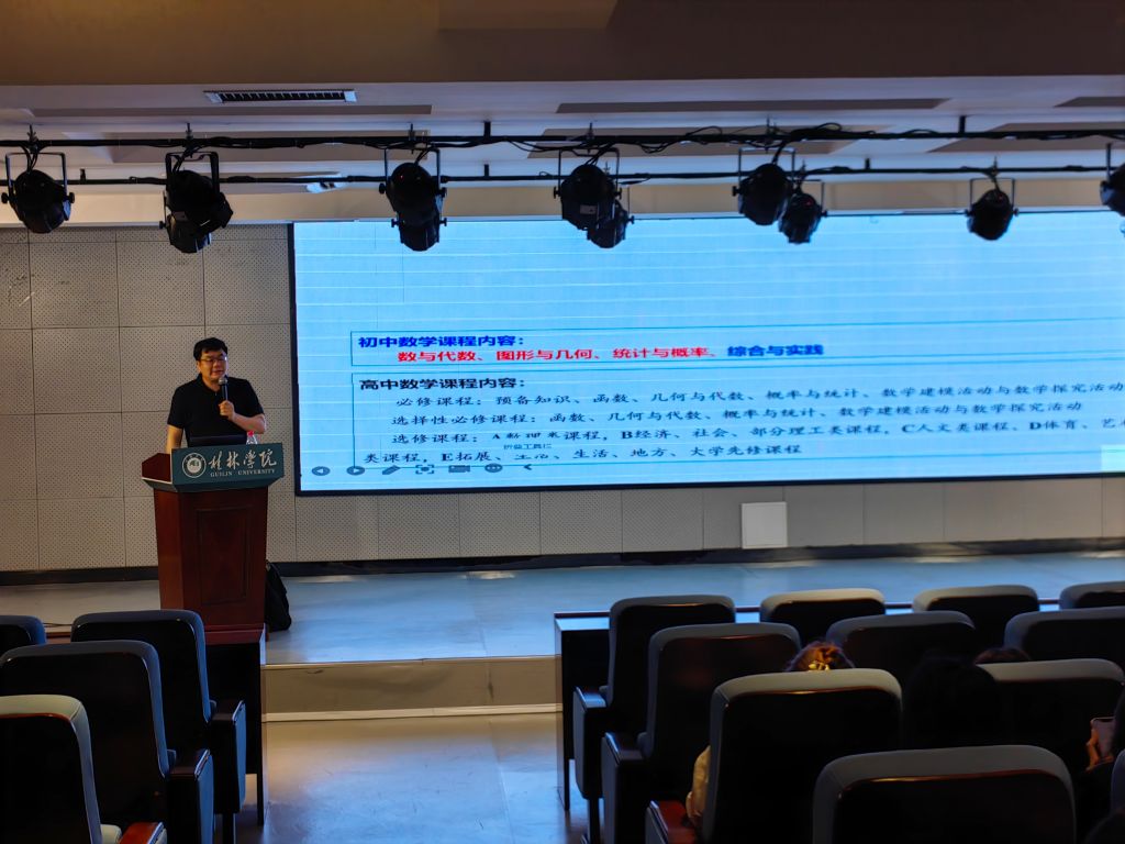 4月13日下午,广西教研员领航工作坊坊主、广西基础教育名师“青蓝工程”培养对象、来宾市教育科学研究所数学教研员、理工学院2005级数学与应用数学专业优秀校友林自强老师,受邀为信息工程学院2024级数学与应用数学专业的同学们,带来了一场以《一名中学数学教师的应知应会》为主题的精彩分享。