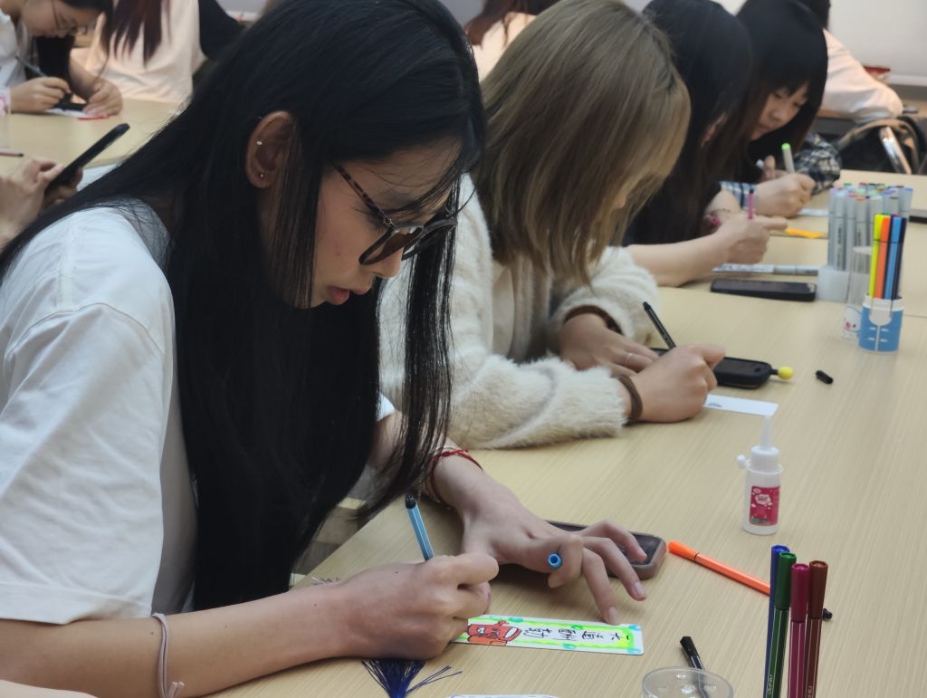 在读书分享环节,三位优秀学生代表分别就《我与地坛》《普罗旺斯种树的牧羊人》和《活着》三本著作,分享了各自的阅读感悟和人生思考。学生代表赵小文围绕余华的《活着》,探讨苦难中的人性光辉与生命韧性,引发了在场师生的强烈共鸣。分享会后,学院组织了书签DIY互动环节。同学们利用彩纸、干花等材料,创作出兼具实用性与艺术性的个性书签。“一枚书签不仅标记阅读进度,更寄托了对知识的热爱。”参与学生表示,活动将美育与阅读结合,进一步激发了学生的创作热情。