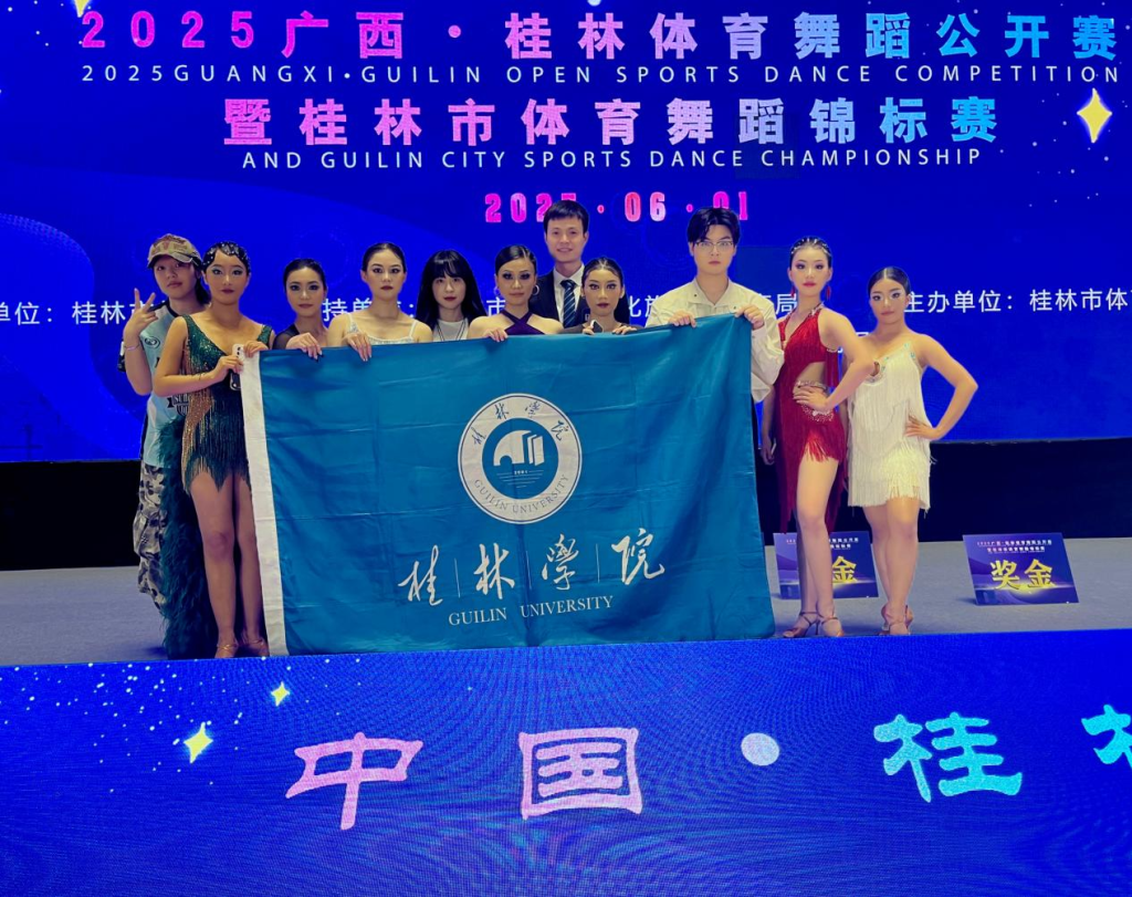 6月1日,“2025广西·桂林体育舞蹈公开赛暨桂林体育舞蹈锦标赛”在桂林漓江大瀑布饭店举行,我校体育舞蹈学生代表队参加了本次比赛,本次比赛的带队老师为宋龙。