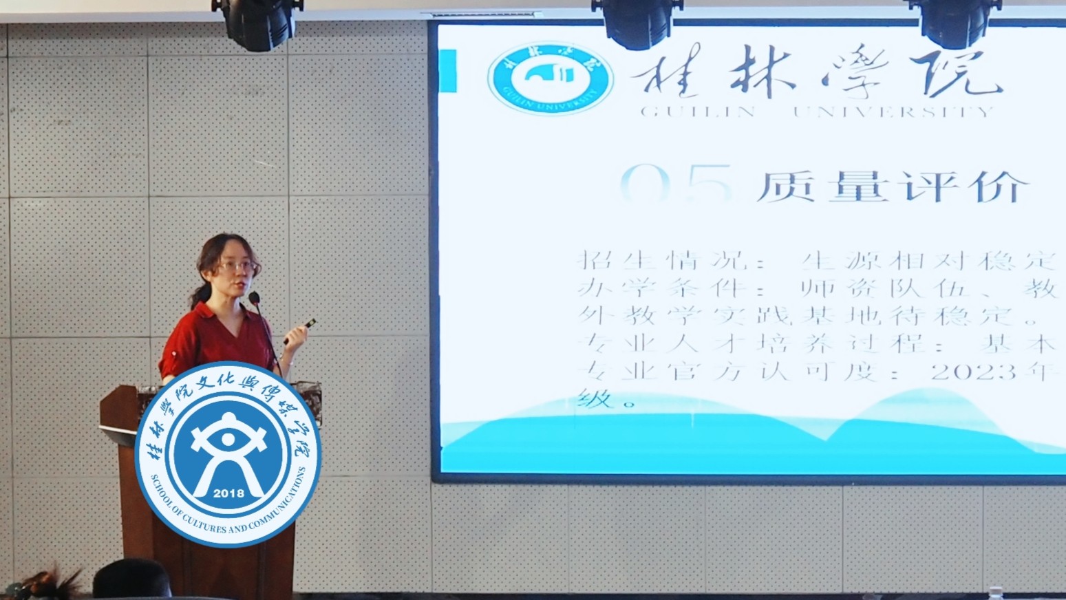 “接着,汉语言文学专业、广播电视编导专业、汉语国际教育专业、新闻学专业等四个专业负责人,结合合格评估指标体系及观测点,分别围绕专业定位与规划、师资队伍建设、教学资源现状、学生发展情况、质量评价及服务社会等方面现场“说专业”。