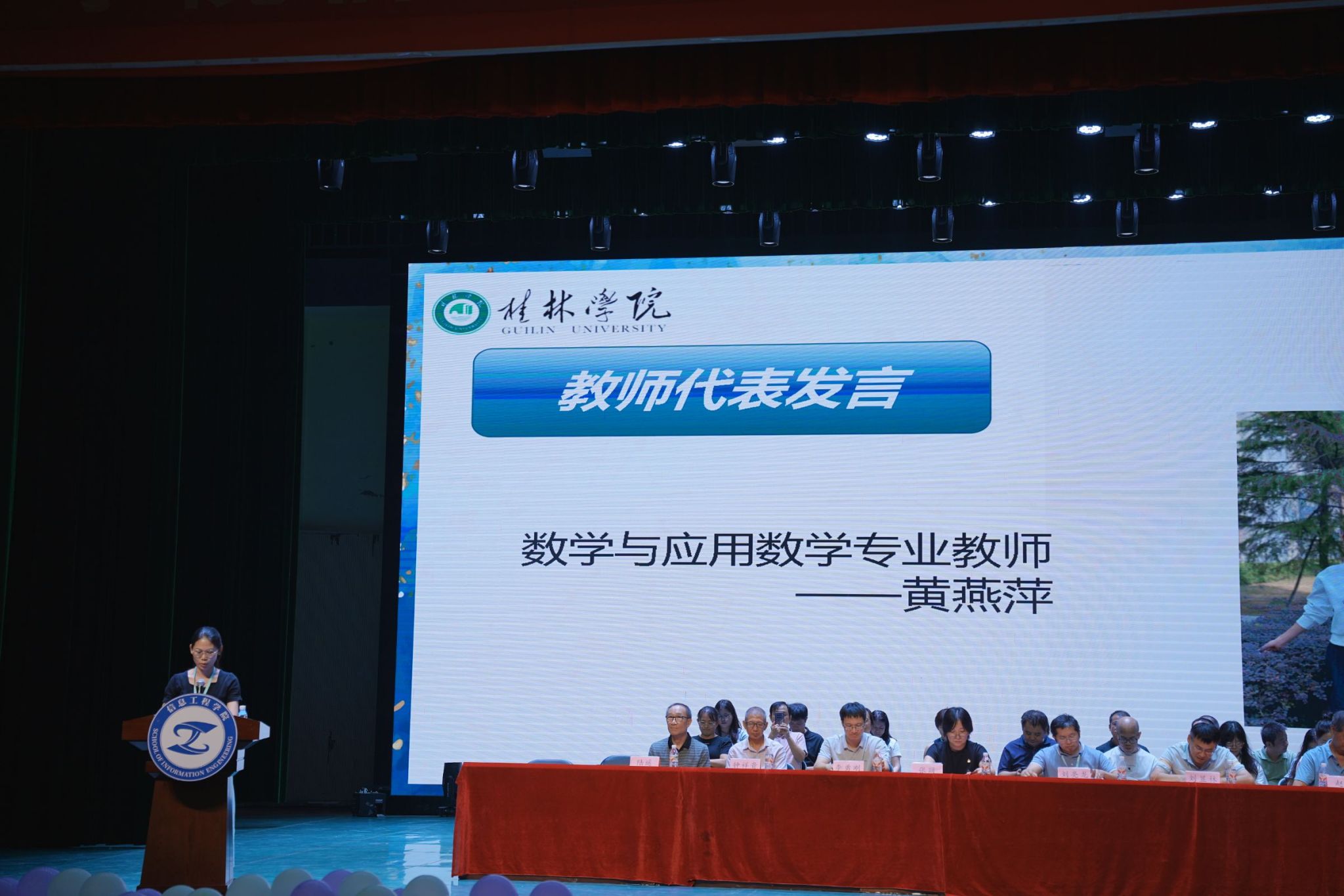 随后,学院各专业教师、辅导员及行政教辅人员依次登台,与新生见面。数学与应用数学专业教师黄燕萍作为教师代表表达了对新生的美好祝愿,勉励新生主动转变学习方式,积极利用各类资源深化专业学习;踊跃参与学科竞赛与项目实践,提升创新与实践能力;并尽早确立学业目标,为长远发展夯实基础。