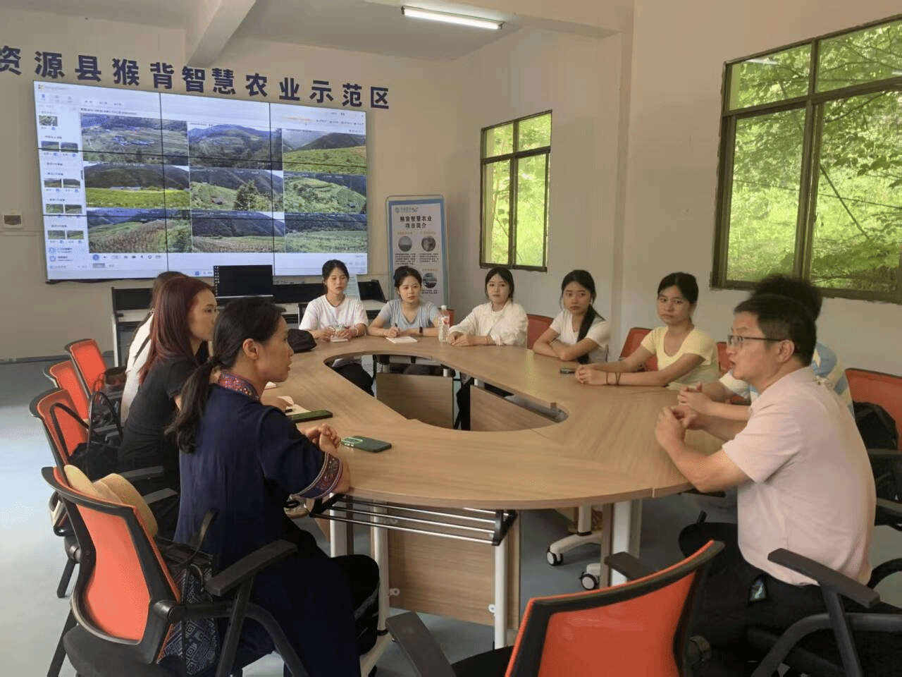 直播结束后,师生受邀参观猴背村百香果智慧农业示范基地。在物联网监控室,实时数据监测系统直观呈现智慧滴灌、无人机植保等技术应用;分拣包装车间内,自动化生产线的高效运作颠覆了学子们对传统农业的认知。 资源县河口瑶族乡党委副书记邹定琼向师生们详细解读“智慧农业+电商直播”产销模式,启发大家对“数字乡村”“新农人”等时代命题的深度思考,让抽象专业知识转化为可感知的现代农业图景。 “第一次接触真实跨境电商场景,看到直播能帮乡亲增收,成就感远超预期。”参与学子坦言。