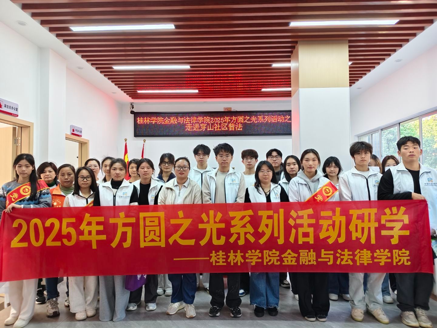 为大力弘扬宪法精神,建设社会主义法治文化,在2025年“宪法宣传周”活动期间,金融与法律学院团总支、学生会联合蒲公英普法团、学院学生党支部的志愿者们,通过打造宪法普法暨方圆计划系列普法实践活动,前往桂林国际会展中心和穿山社区开展了两场特色鲜明的普法实践活动,用青春力量传递法治温度。
