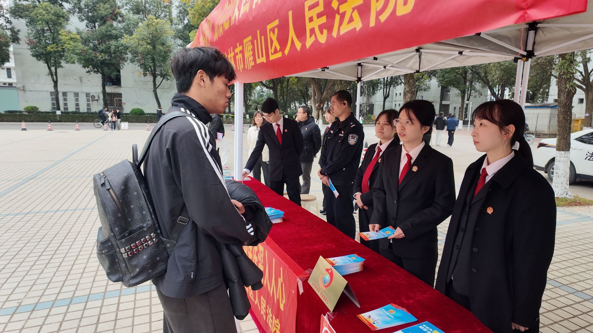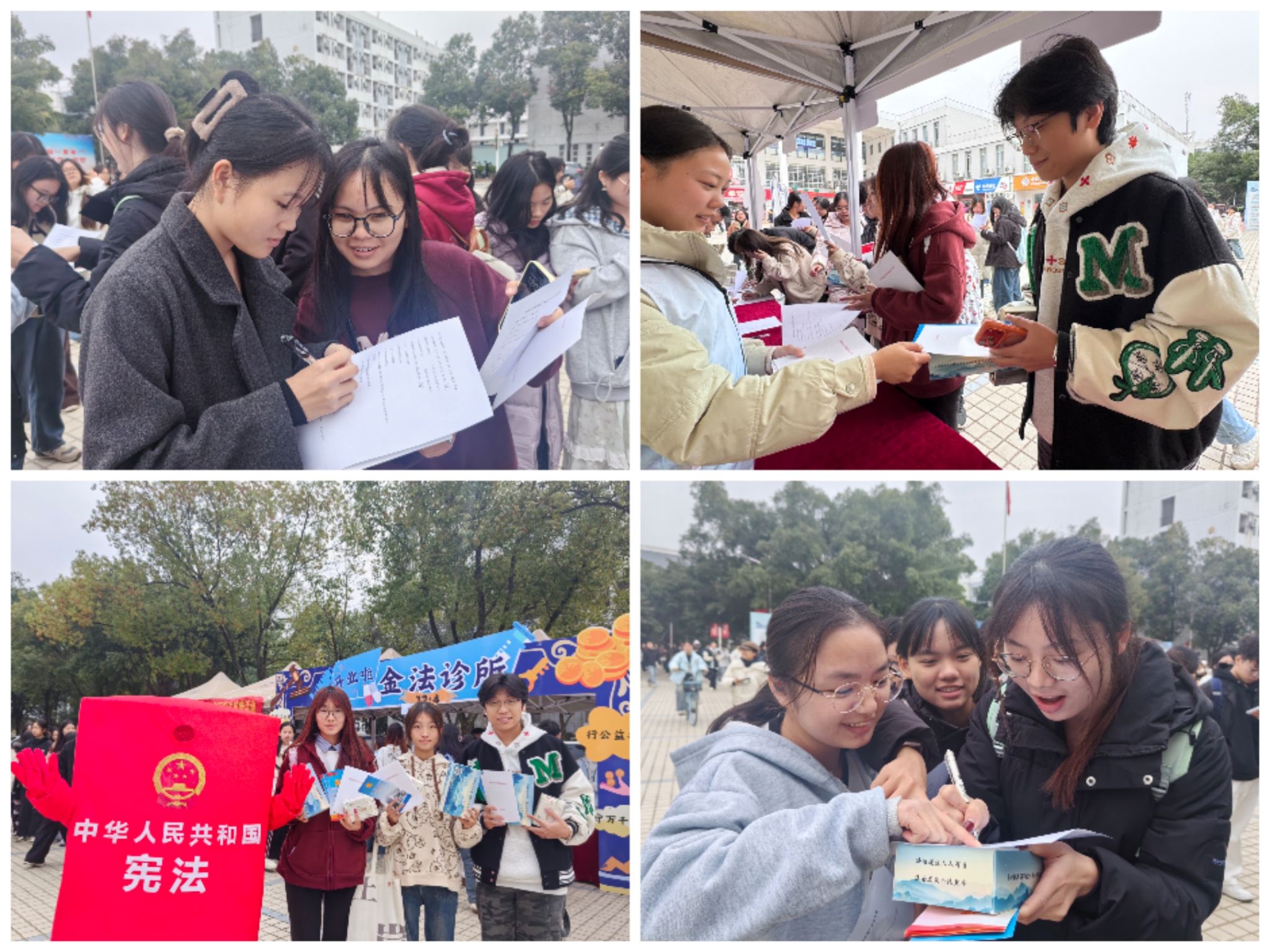 活动现场,“金法诊所”咨询台与宪法宣传展位并肩设立,形成一道专业而温暖的风景线。金融与法律学院团总支的学生志愿者与雁山法院的法官并肩而坐,围绕“宪法权利”“金融防诈”“校园借贷”“兼职权益”等师生关切的问题,提供面对面的公益咨询与案例剖析。同学们纷纷表示,这种“看得见、问得着”的形式,让抽象的法律条文变得具体可感。