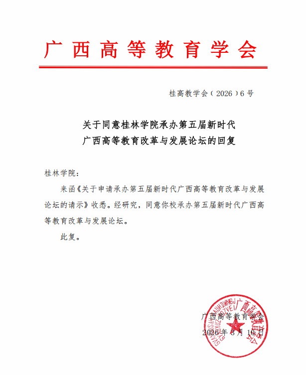 近日,在校领导的高度重视与支持下,经广西高等教育学会批复,我校将承办第五届(2026年)新时代广西高等教育改革与发展论坛。