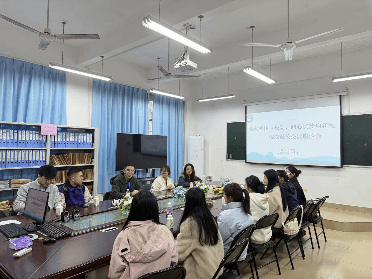 3月21日,外国语学院在2108会议室顺利举办“薪火相传承校韵,同心筑梦启新程”2025届校友返校交流座谈会。数位2025届校友重返校园,与学院领导、辅导员欢聚一堂,共忆青春岁月,共叙校友情谊,共话发展未来。